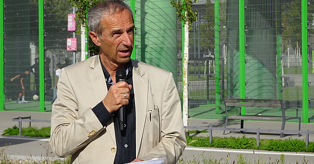 Als Vision nannte Matthias Geist eine grüne Oase mit Bäumen, Sitzgelegenheiten und einem überdachten Bereich – ein Ort, an dem Veranstaltungen wie das Fest der Religionen künftig stattfinden können.